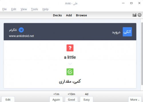 نرمافزار آنکی با نام انکیدروید بر روی سیستم اندروید نصب میشود،بنابراین شما میتوانید مجموعه فلشکارت لغات زبان انگلیسی سوم را همیشه به همراه داشته باشید و در زمانهایی که به اصطلاح مرده هستند به مطالعه و مرور فلشکارت بپردازید.با این روش زمانهای مرده،به ساعات مطالعاتی تبدیل شده و ساعات مطالعاتی شما در روز به چند برابر افزایش پیدا خواهد کرد.