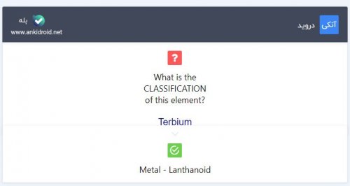 این فلش کارتها برای یادگیری اطلاعات موجود در جدول تناوبی عناصر طراحی شدهاند. این فلش کارتها تمامی اطلاعات یک عنصر را(عدد اتمی، نماد، آرایش الکترونی و ...) از شما میپرسد.