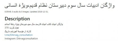 واژگان ادبیات کتاب ادبیات فارسی سال سوم دبیرستان ویژۀ رشتۀ انسانی