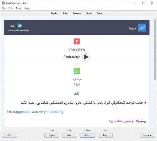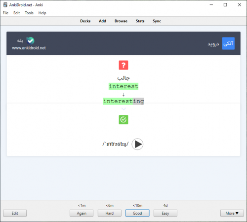 - فارسی به انگلیسی(FatoEn): فارسی را نمایش میدهد و انگلیسی را جواب میدهید