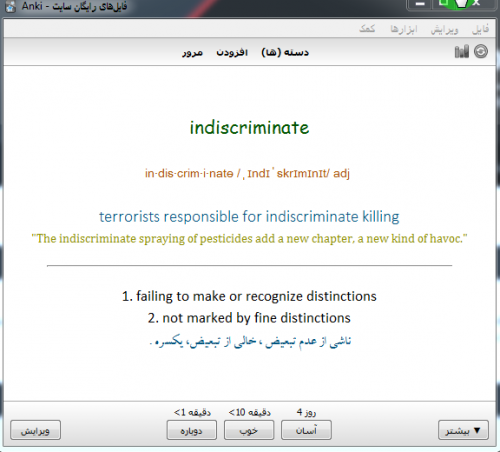 نکته اول: چنان چه هنگام وارد کردن (ایمپورت) این مجموعه، نرم افزار به شما گزینه های «ریپلیس» ، «ریپلیس آل» و ... را نمایش دهد باید گزینه «ریپلیس آل یا «جایگزین کردن همه» را انتخاب نمایید تا کارتها به ترتیب دروس (مشابه ترتیب درسهای کتاب)نمایش داده شوند. نکته دوم: برای آنکه لغات خوانده شده با لغات جدید آمیخته نشود و فراگیر دچار سردر گمی نشود باید در تنظیمات دیفالت (پیش فرض)، تغییراتی ایجاد شود
