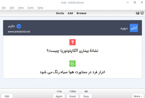 نرمافزار آنکی با نام انکیدروید بر روی سیستم اندروید نصب میشود،بنابراین شما میتوانید این مجموعه فلشکارت را همیشه به همراه داشته باشید و در زمانهایی که به اصطلاح مرده هستند، به مطالعه و مرور فلشکارت بپردازید.با این روش زمانهای مرده،به ساعات مطالعاتی تبدیل شده و ساعات مطالعاتی شما در روز به چند برابر افزایش پیدا خواهد کرد.